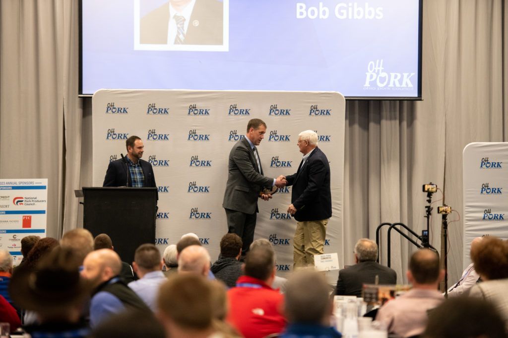 The work of the Ohio Pork Council is made possible by supporters who devote time to enhance the organization’s efforts on behalf of all producers. To acknowledge their efforts and express gratitude, OPC established the Friend of Ohio Pork Industry award. This award recognizes an individual, organization, or company making a substantial impact on the organization through monetary support, voluntary activities, or general support to the pork industry. The Ohio Pork Council honored Former Congressman Bob Gibbs with the Friend of the Pork Industry award this year.