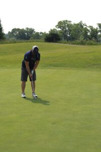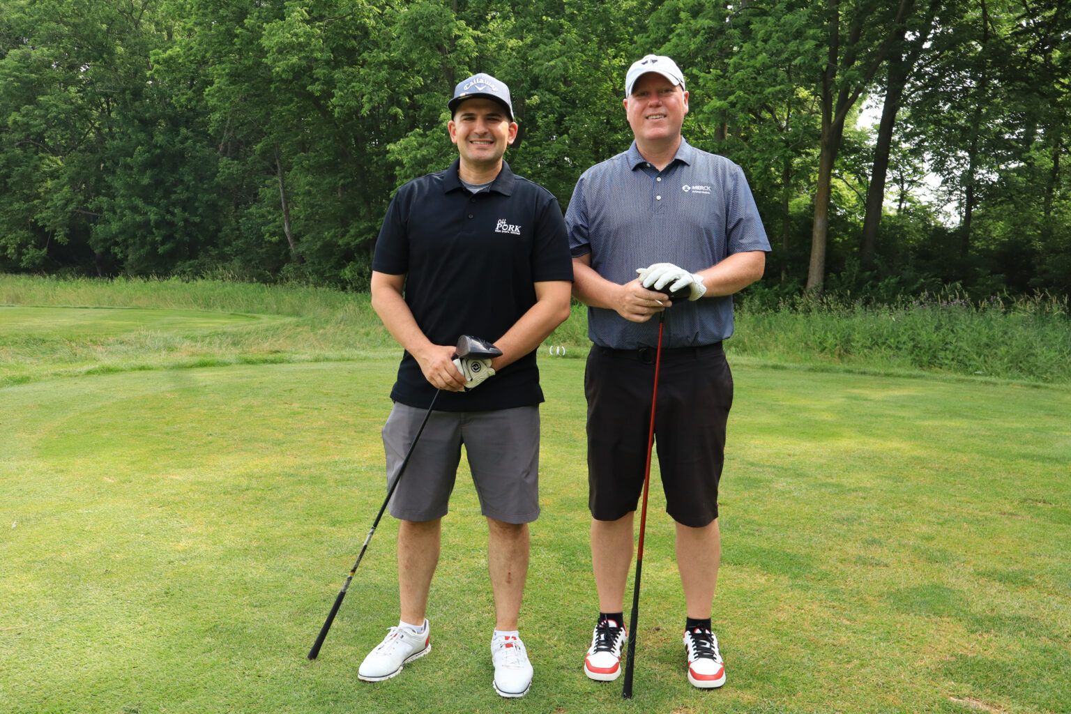 On behalf of Ohio’s pig farmers, Nathan Schroeder, president of the Ohio Pork Council (OPC) and farmer from Leipsic, Ohio (left), presented a check for $5,000 to Rod McGuire, vice president of food resources for the Greater Cleveland Food Bank to purchase pork for distribution throughout the organization’s six-county area.