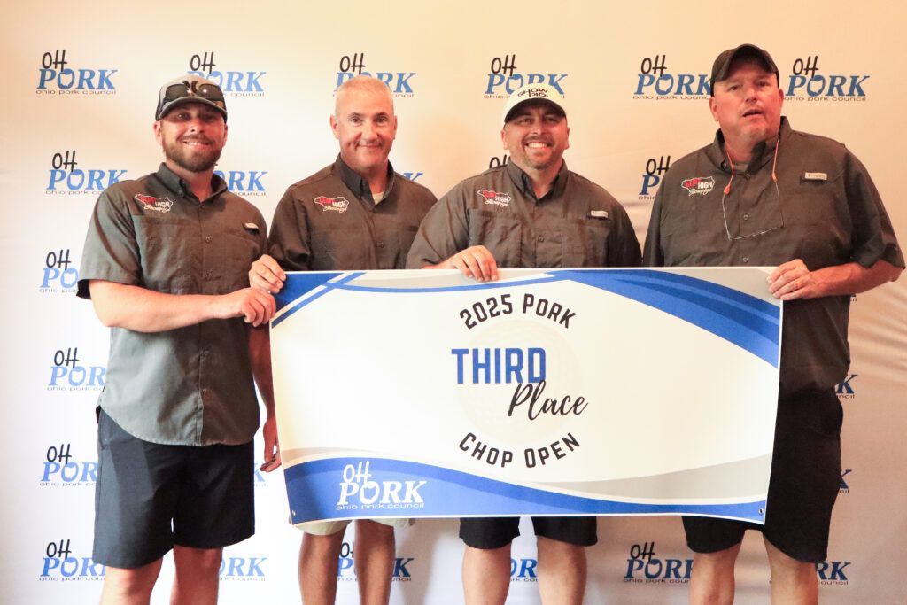 Jess Stevens, pork producer from Waynesville, Ohio (second from left) presented a check for $5,000 of pork on behalf of Ohio’s pig farmers for the Freestore Foodbank. The funds will be used to distribute pork throughout the 20 county region the nonprofit serves.